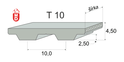 Remeň MEGApower 2, profil T10, je modernou triedou remeňa schopný prenášať vysoké výkony s vysokou presnosťou. Použitý vysoko kvalitný polyuretán novej generácie (88 ShA) zaručuje vysokú odolnosť voči oderu. Špirálovo vinuté pevnostné kordy z pozinkovanej ocele zaručujú vysokú pevnosť v ťahu.